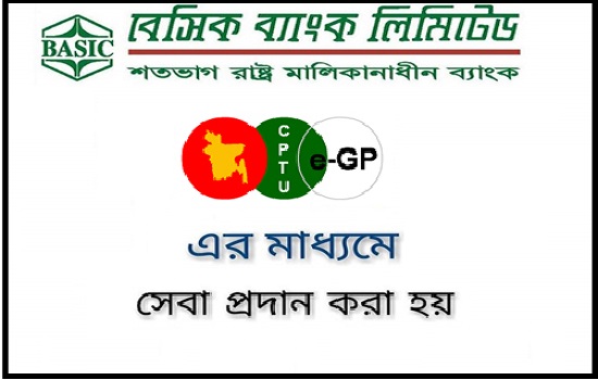 BASIC Bank PLC. is allowed to register for collecting fees and conducting financial transactions for e-GP. Scheduled banks and other payment service providers get secured access to the e-GP system with their own dedicated and secured Dashboard. Any fee stipulated in the tender document by Procuring Entities should be paid through BASIC Bank Limited.