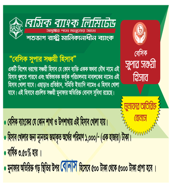 The Basic Super Savings Account is a special type of savings account with additional bonus benefits of conventional interest. It will encourage saving habits in people.   Features: • Opening deposit is minimum Tk.1000/-(Tk. One Thousand) • Any...